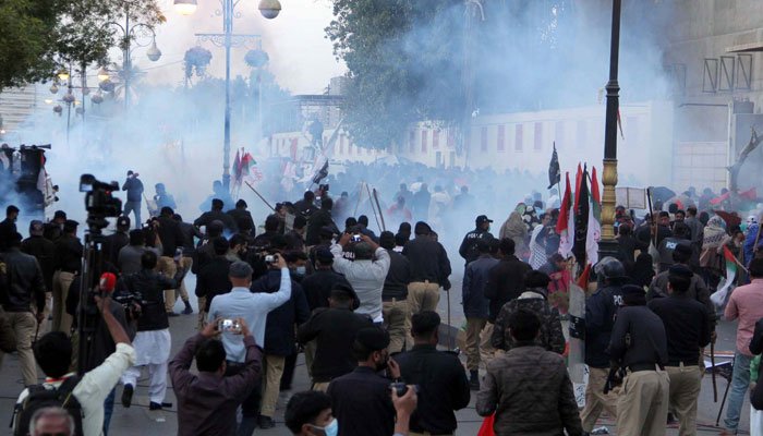کراچی، وزیراعلیٰ ہاؤس پر ایم کیوایم کا دھرنا، شیلنگ، لاٹھی چارج، ایک جاں بحق، کئی زخمی، متعدد گرفتار