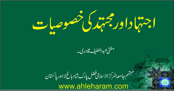 اجتہاد اور مجتہد کی خصوصیات مفتی عبداللطیف قادری مہتمم جامعہ المرکز الاسلامی فضل پارک شاد باغ لاھور پاکستان اجتہاد کی تعریف بلکہ اس کا نام ہی سے واضح ہے کہ یہ ایک بڑا نازک اور… اجتہاد اور مجتہد کی خصوصیات .مفتی عبداللطیف قادری مہتمم جامعہ المرکز الاسلامی فضل پارک شاد باغ لاھور پاکستان