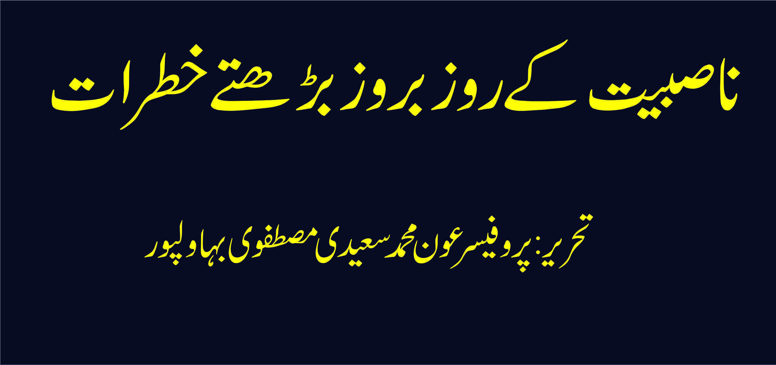 تحریر : پروفیسر عون محمد سعیدی مصطفوی بہاولپور ناصبیت کے روز بروز بڑھتے ہوئے خطرات رافضیت کی ایمان شکن موجوں کے غالب تھپیڑوں کے بعد اب اہل سنت کو ناصبیت کی امڈتی ہوئی دین دشمن… ناصبیت کے روز بروز بڑھتے ہوئے خطرات