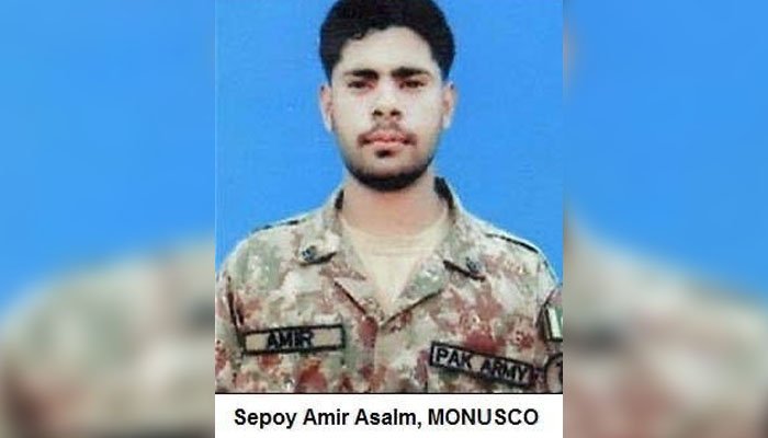 اقوام متحدہ نے کانگو میں جامِ شہادت نوش کرنے والے پاک فوج کے شہید سپاہی عامر اسلم کو اقوام متحدہ کے امن میڈل سے نوازدیا۔ سماجی رابطے کی ویب سائٹ ٹوئٹر پر ڈی جی آئی… اقوام متحدہ کا پاک فوج کے شہید سپاہی کیلئے امن میڈل