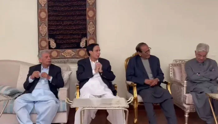 چوہدری برادران سے ن لیگی وفد کی ملاقات، عدم اعتماد پر مشاورت جاری